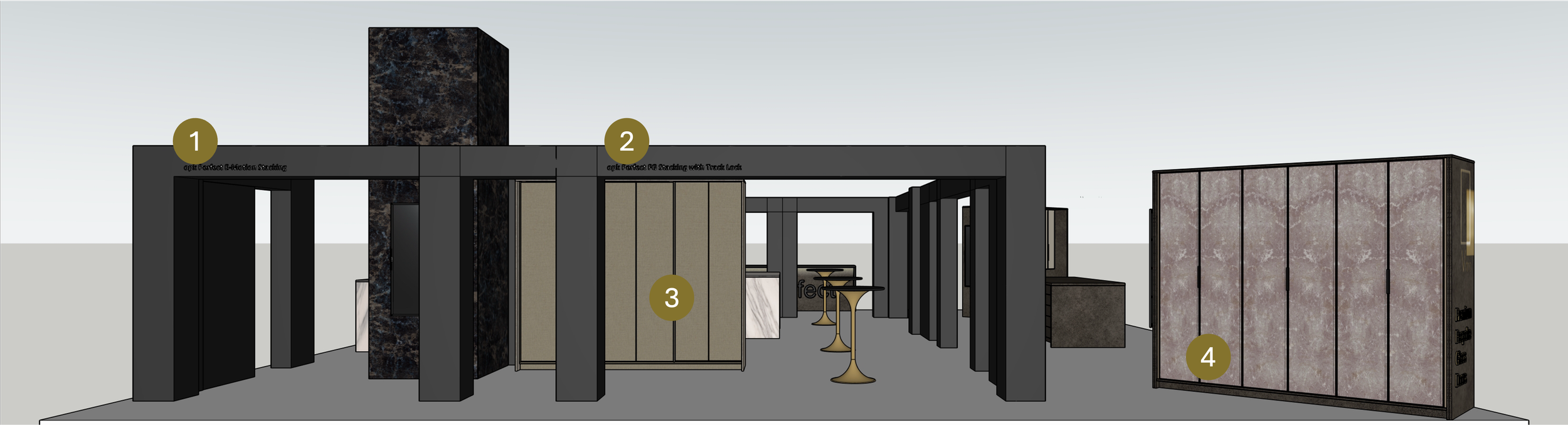 OPK Ecoline Cabinet pocket Door system with Finsa Robel Rigato Yute